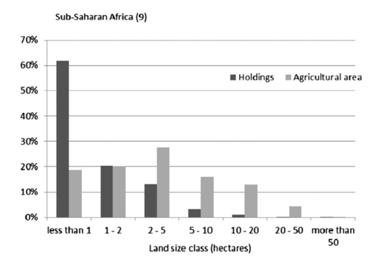 Figure S11.3 Sub-Saharan farm size category and area distributions compared (Lowder et al., 2015).
